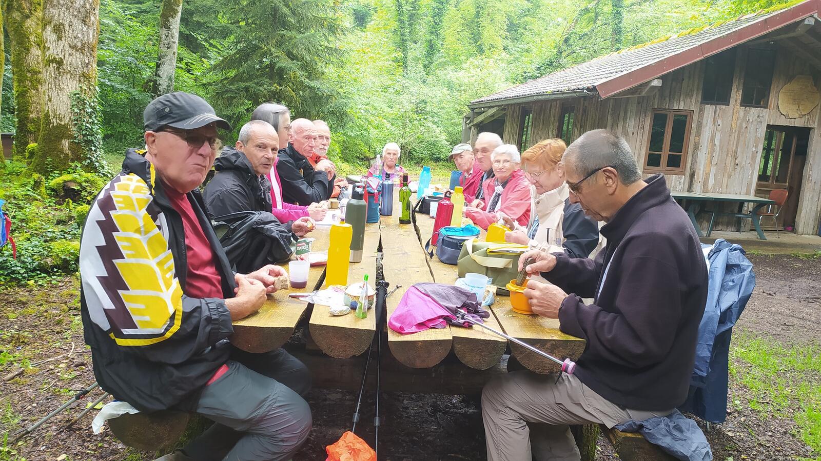 Direction Ornant pour le saut de Bonneille où Claude nous a réservé deux surprises pour la fin du séjour : une belle et longue grimpette d’escaliers très raides, et plus agréable un déjeuner au bord de La Loue à Ornant.